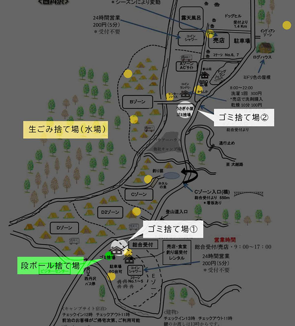 ・生ごみは各水場のポリバケツにお捨ていただけます。